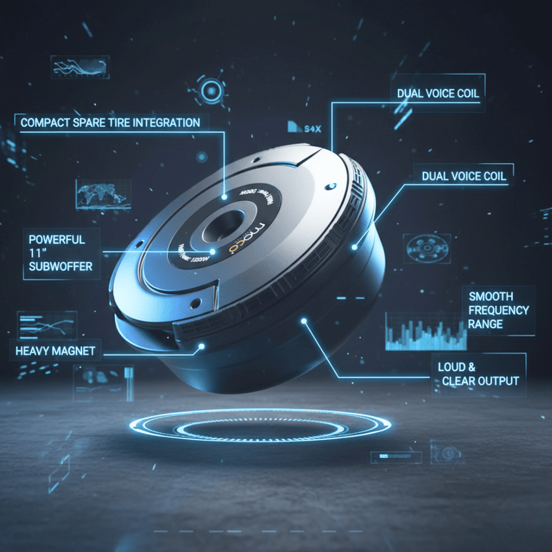 Designed to fit seamlessly into a vehicle's spare tire cavity, making it a space-efficient solution without compromising bass output.