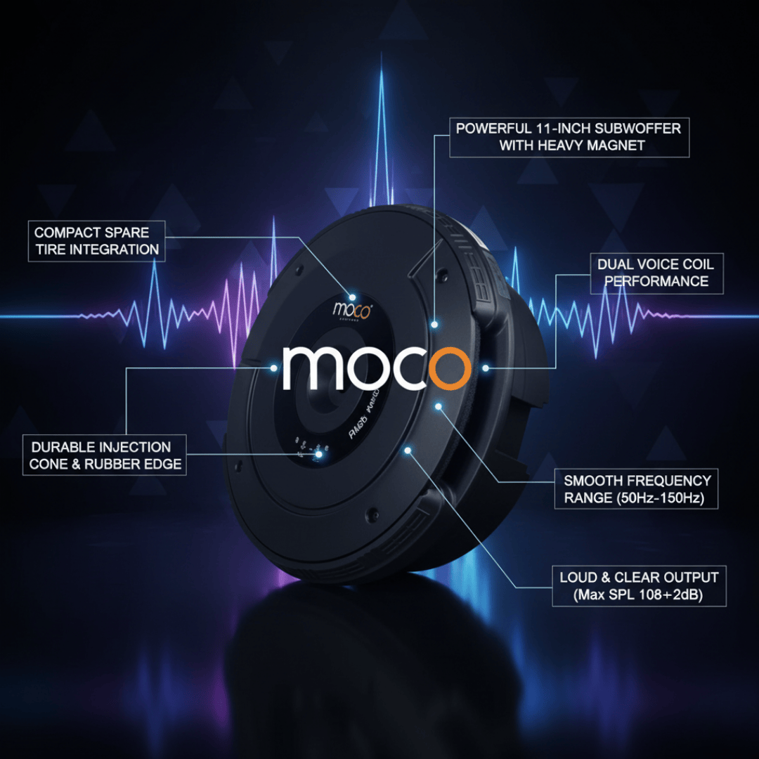 ST-11 is a space-saving passive spare tire subwoofer that delivers deep, powerful bass without compromising trunk space—ideal for discreet yet impactful car audio enhancement.