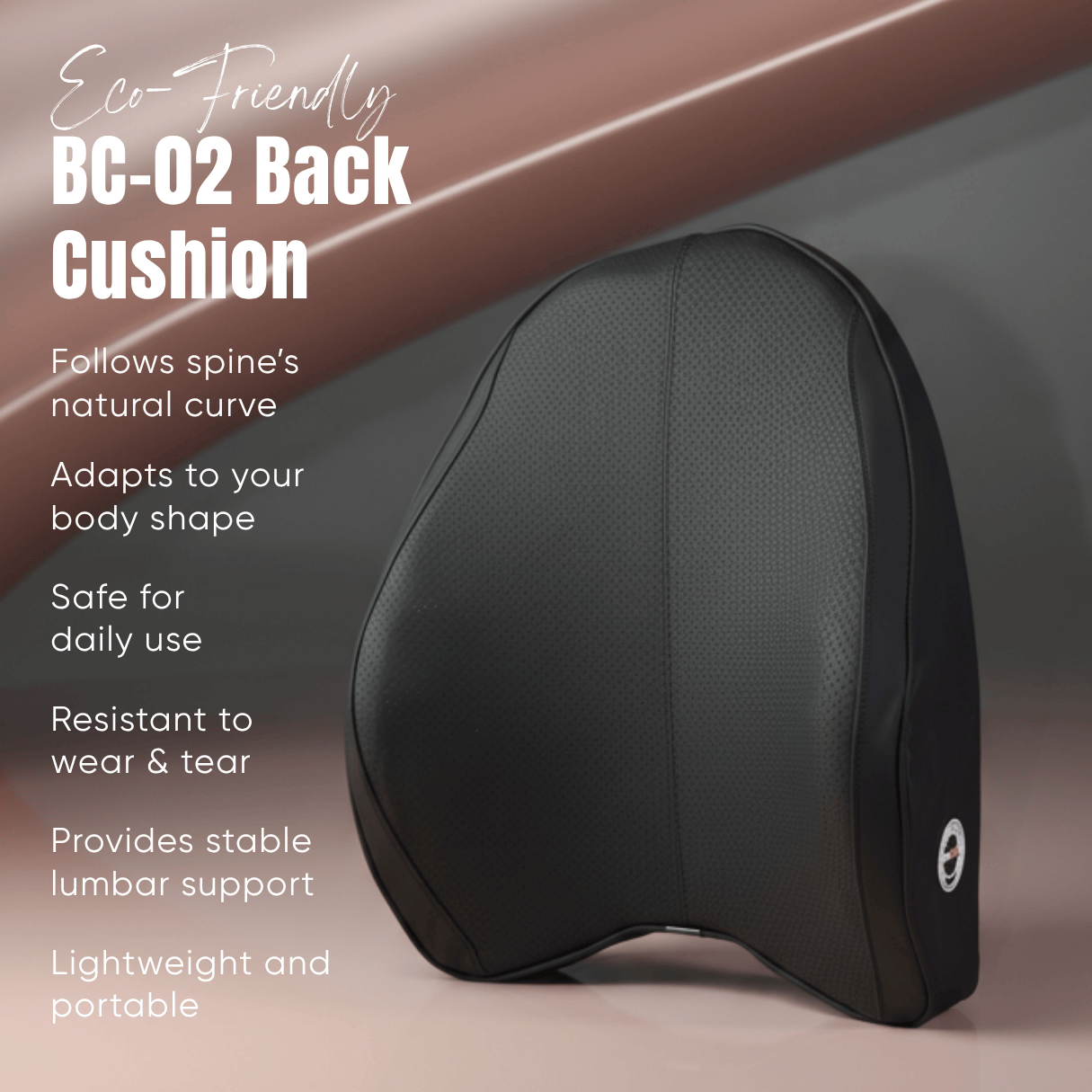 The BC-02 is a premium memory foam back cushion designed to deliver maximum spinal support, improved posture, and ultimate comfort during long journeys or extended periods of sitting. Its ergonomic shape and eco-friendly materials make it a smart choice for health-conscious users.