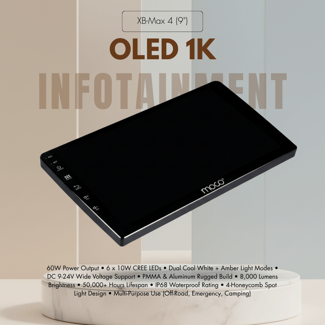 The XB-Max 4 (9"") OLED 1K redefines in-car entertainment with upgraded memory, powerful audio output, and an immersive OLED viewing experience. Designed for high-performance vehicles and users who demand the best in both sound and screen, this system is the perfect blend of power, clarity, and control.
