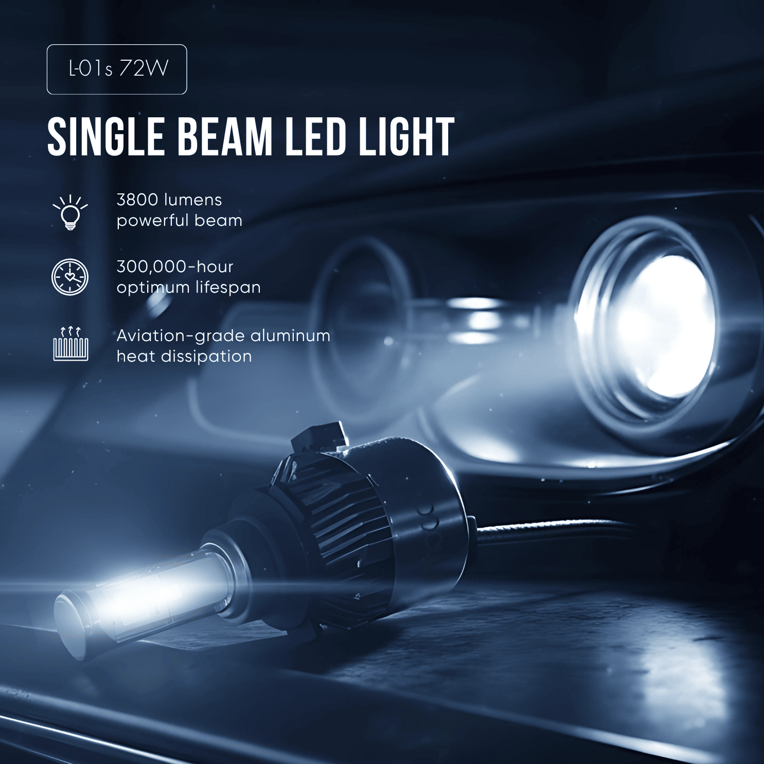 The L-01s is a compact and efficient LED headlight designed to provide bright and clear illumination with enhanced durability. Featuring premium Korean chipset technology and advanced heat dissipation, it delivers wider and better vision compared to traditional halogen lights.