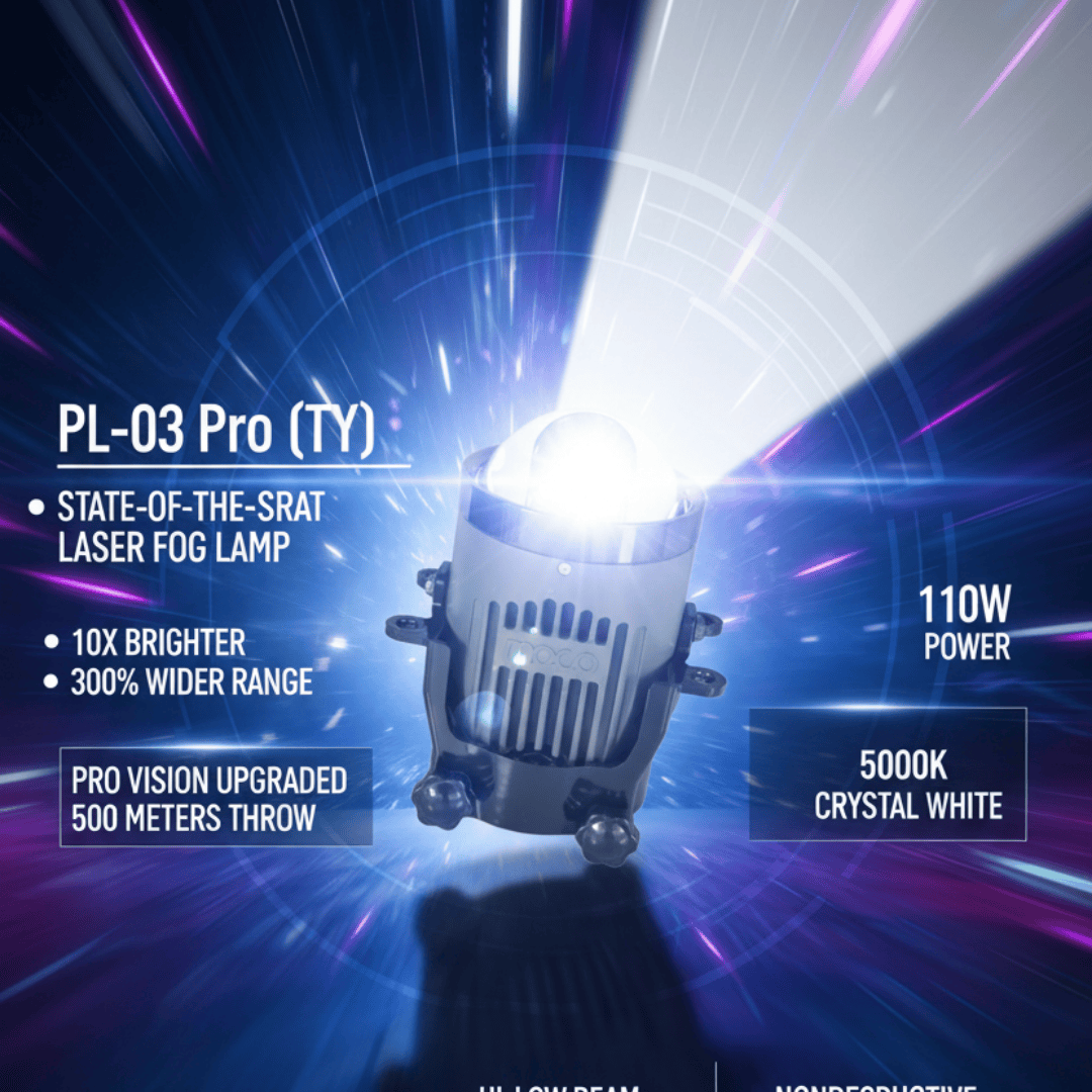 The PL-03 Pro is a state-of-the-art LED fog lamp featuring laser beam technology, high lumen output, and patented design for unmatched clarity and safety. With 10X the brightness of halogen lamps and a 300% wider irradiation range, it offers superior road visibility in foggy, low-light, and night-time conditions.