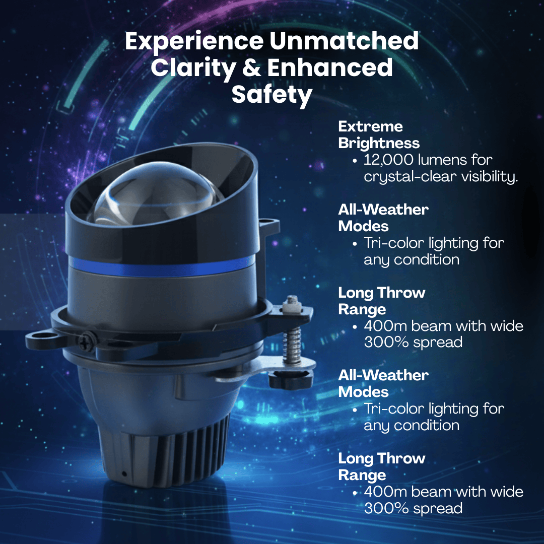 The PL-10 (TY) is a high-performance 3-inch LED projector fog lamp designed to deliver exceptional brightness, safety, and customizability. Equipped with Tri-Color lighting, a Hi-Low Beam system, and a durable metal remote, it ensures optimal visibility across diverse weather and road conditions.
