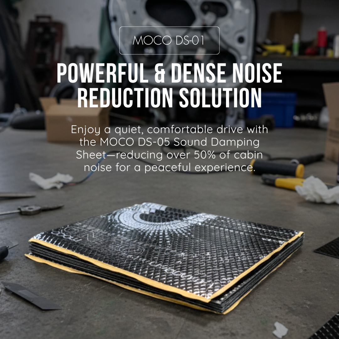 DS-01 Damping Sheet features triple-density construction to drastically reduce unwanted noise and vibrations—ensuring superior sound clarity and a quieter driving experience.