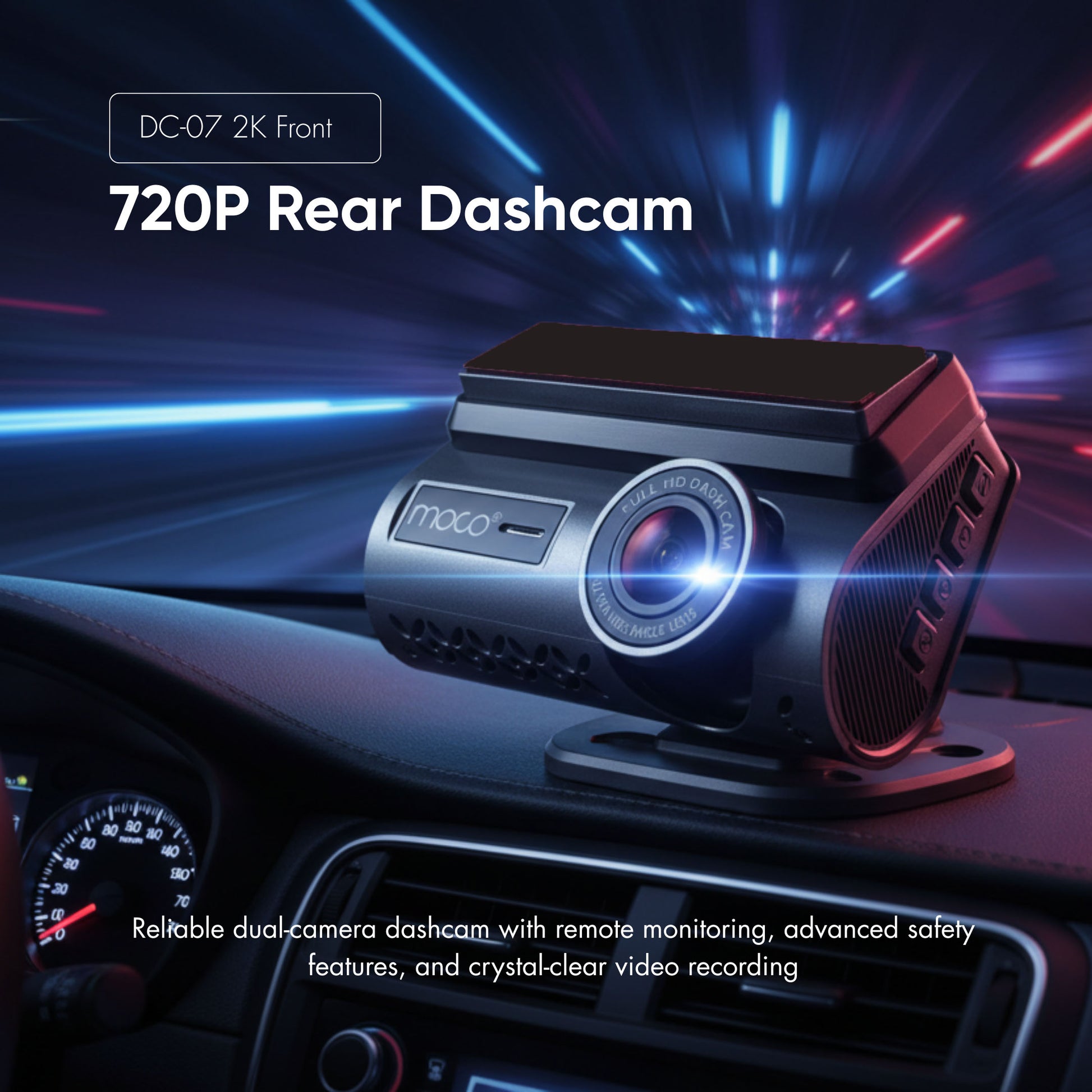 The DC-07 dashcam offers reliable safety with a 3-inch IPS screen, 2K front and 720P rear cameras, and remote video monitoring via 4G.