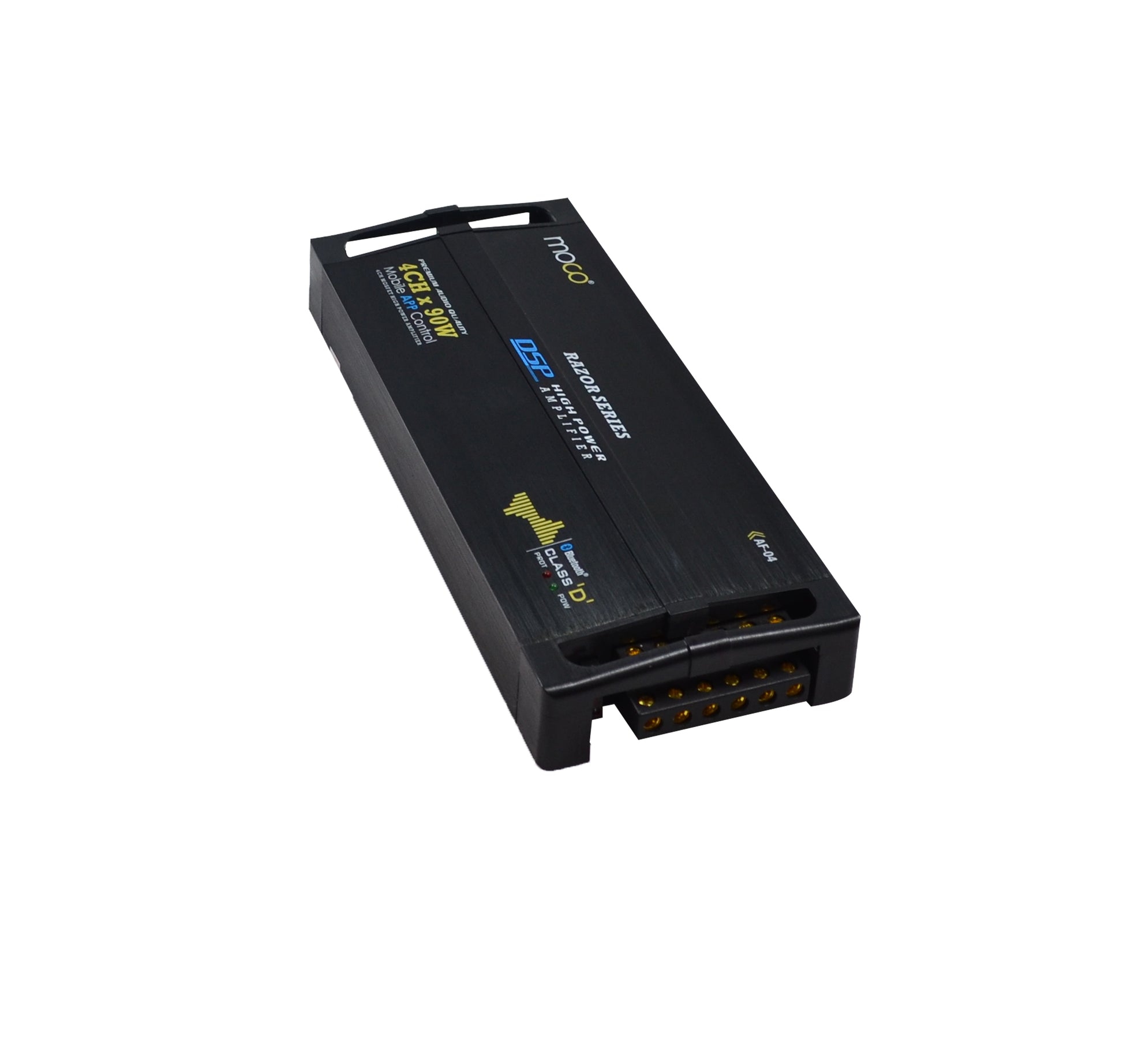 Delivers 120W RMS @ 4Ω across 4 channels or up to 450W bridged @ 4Ω, offering powerful, distortion-free performance for a complete in-car audio setup.