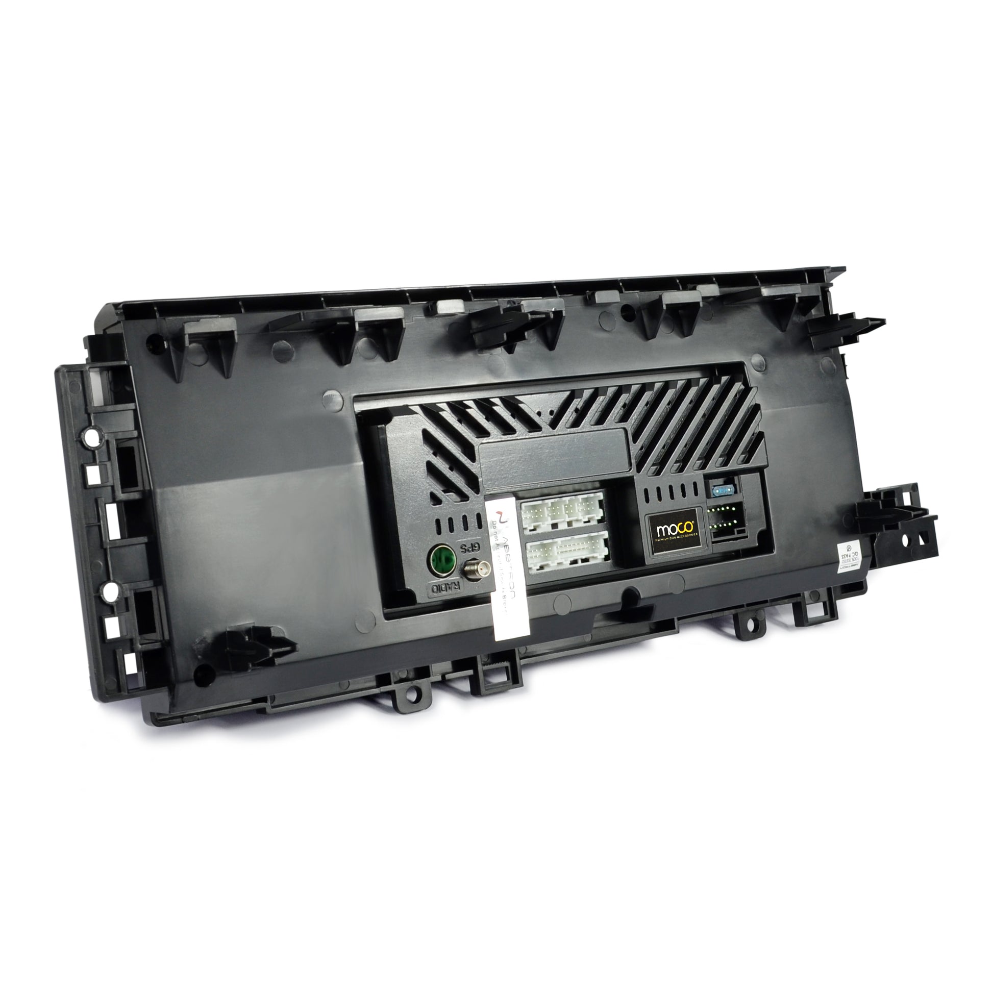 Standard double-din size for universal dashboard fitting.
