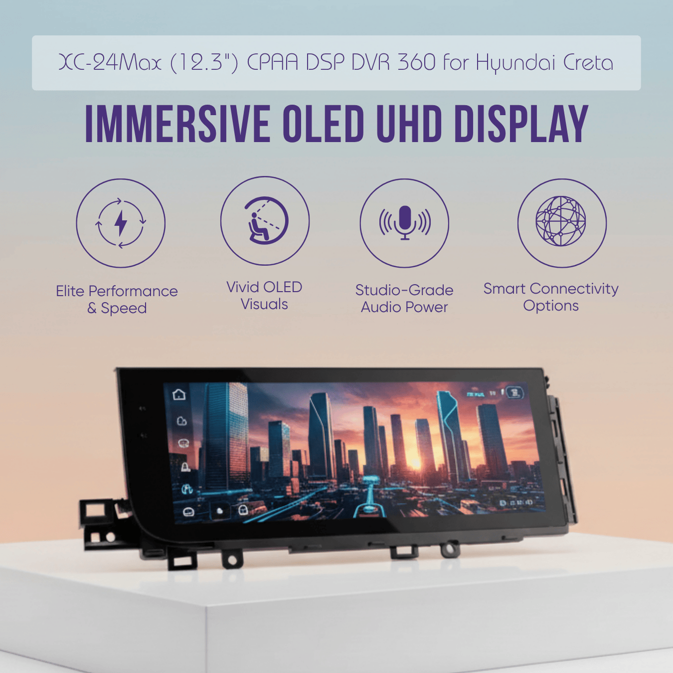 The XC-24Max (12.3"") OEM Multimedia Player features a stunning OLED UHD display with 2.5D Gorilla Glass, powered by Android 10 and an Octa-Core processor.