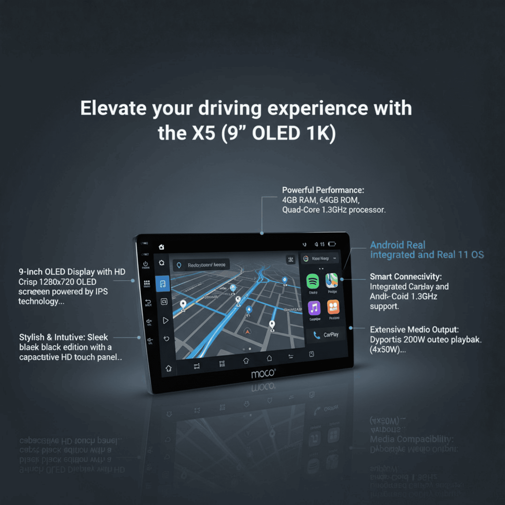 Elevate your driving experience with the X5 (9"") OLED 1K, a premium infotainment unit engineered for performance, style, and smart connectivity. Designed with advanced features and superior hardware, it redefines in-car entertainment.