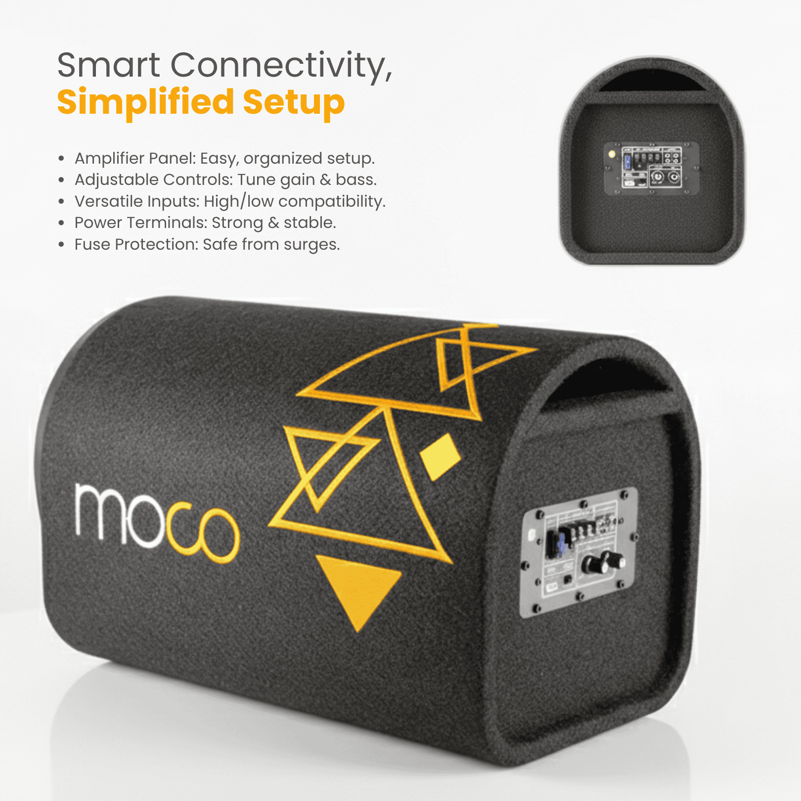 Powerful 8" active subwoofer with built-in amplifier, delivering deep bass and rich sound in a compact, vented enclosure—perfect for enhancing any car audio system.