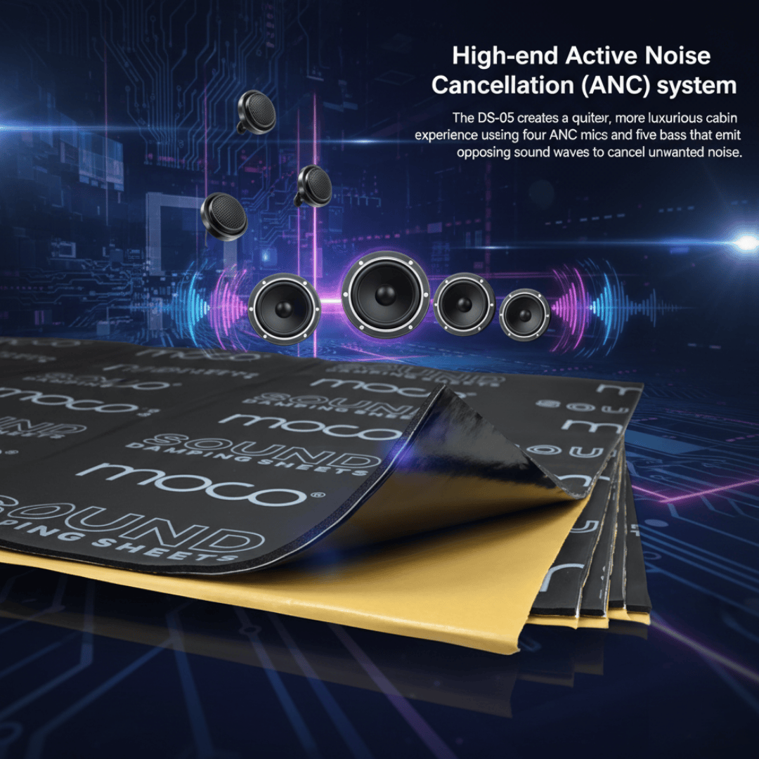 DS-05 is a high-end Active Noise Cancellation (ANC) system designed to create a quieter, more luxurious cabin experience. It features four ANC microphones integrated into the vehicle headlining and five bass loudspeakers that emit opposing sound waves to cancel unwanted noise.