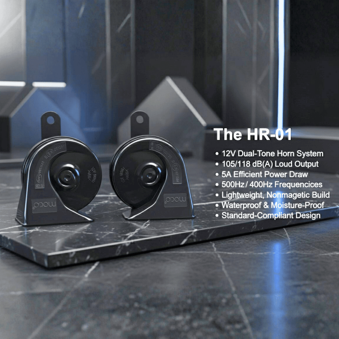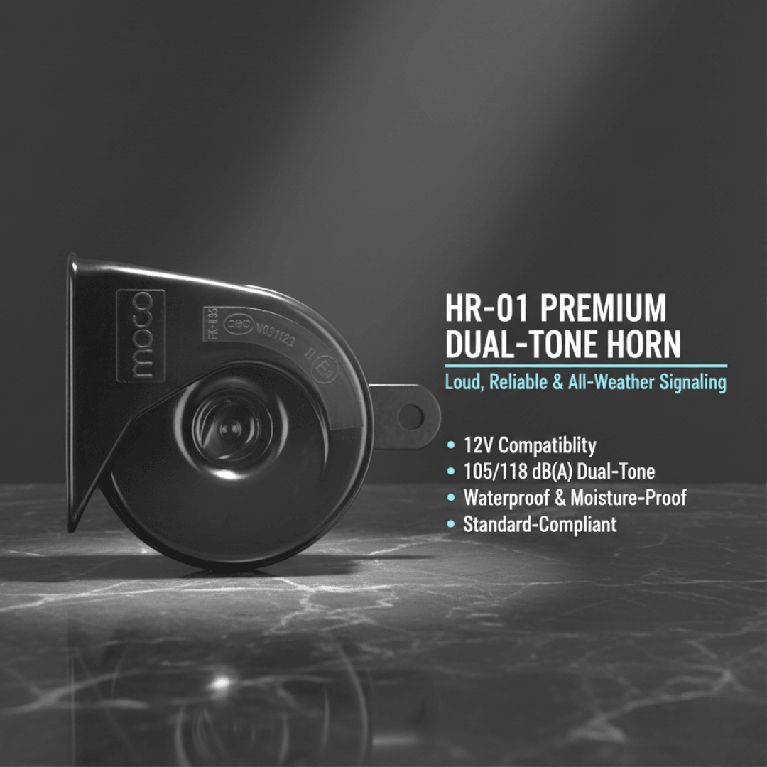 The HR-01 is a premium-grade electrical horn designed for vehicles requiring loud, reliable, and energy-efficient signaling. With its dual-tone output and water-resistant design, it’s built to withstand diverse environments while maintaining consistent sound performance.